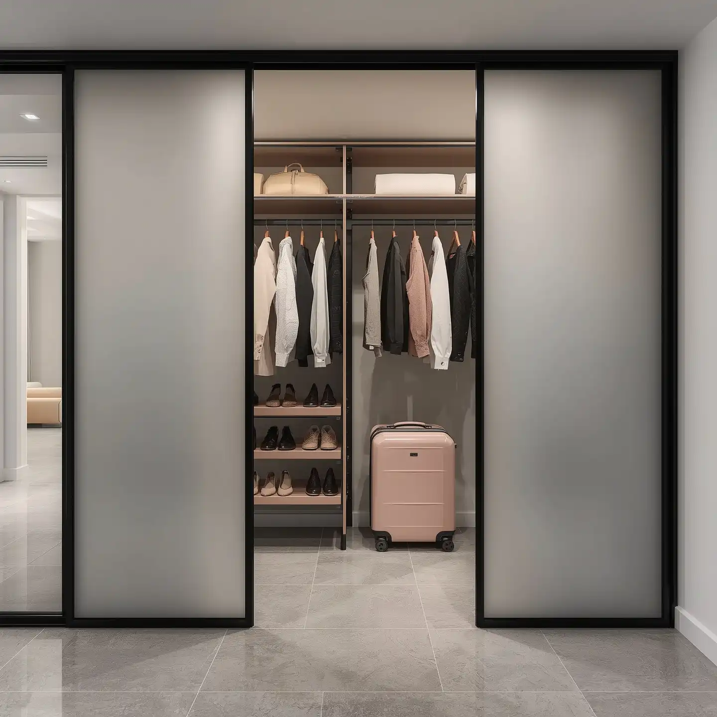 Glass panel sliding wardrobes bring sophistication and elegance to any bedroom design. The transparent or frosted glass doors allow you to showcase your organized clothing collection while maintaining a clean, minimalist aesthetic.